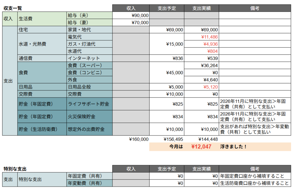 今回は2025年12月分の我が家の生活費についてまとめました。